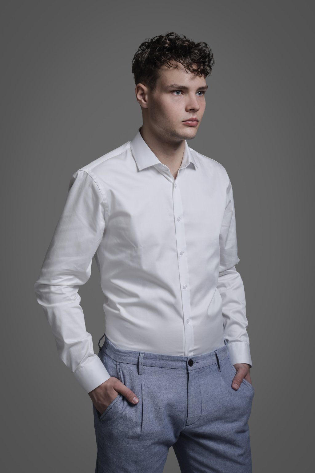 Smetanová košile vyštíhleného střihu ze 100% bavlny je ideální volbou pro jakoukoliv kombinaci vašeho outfitu.
