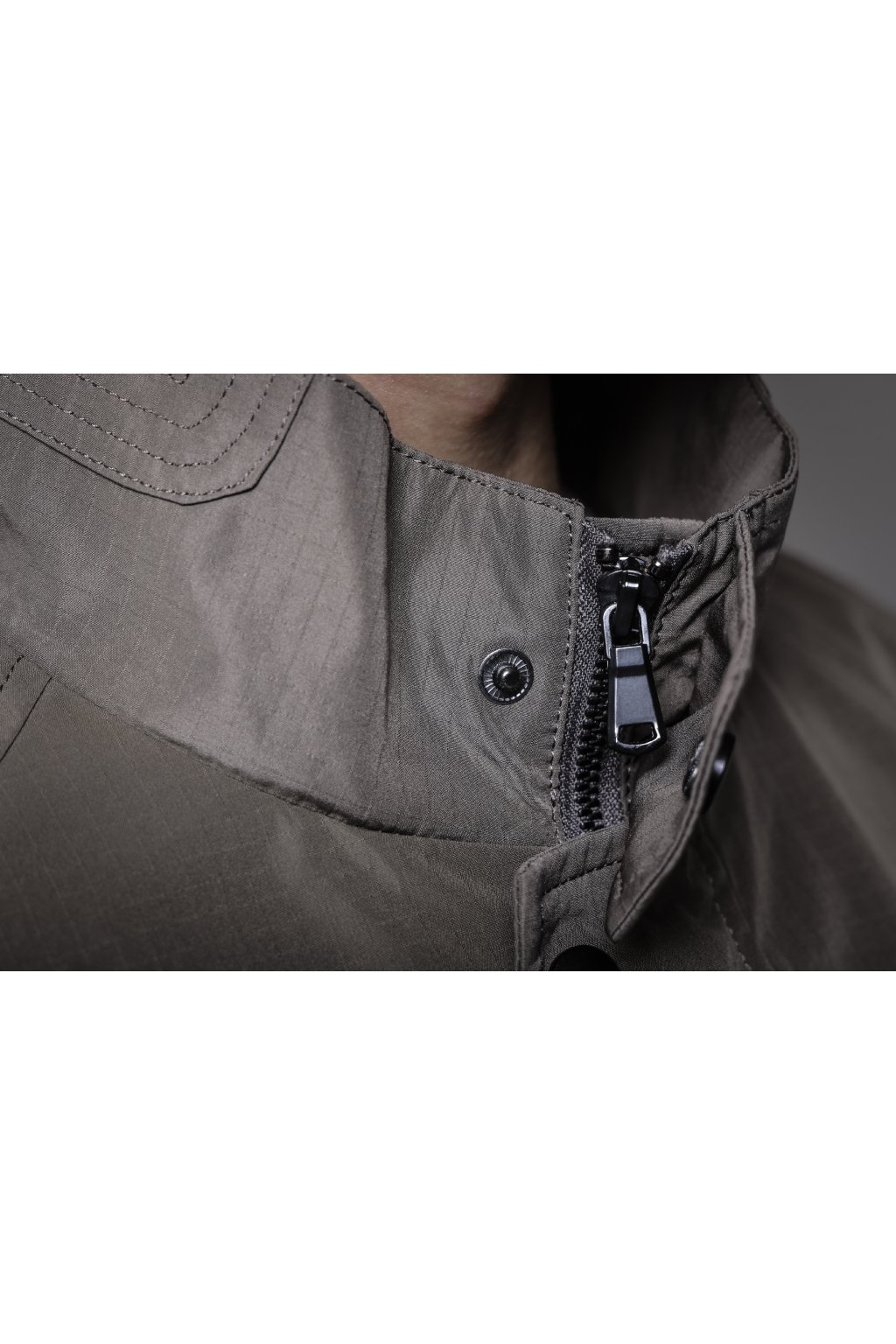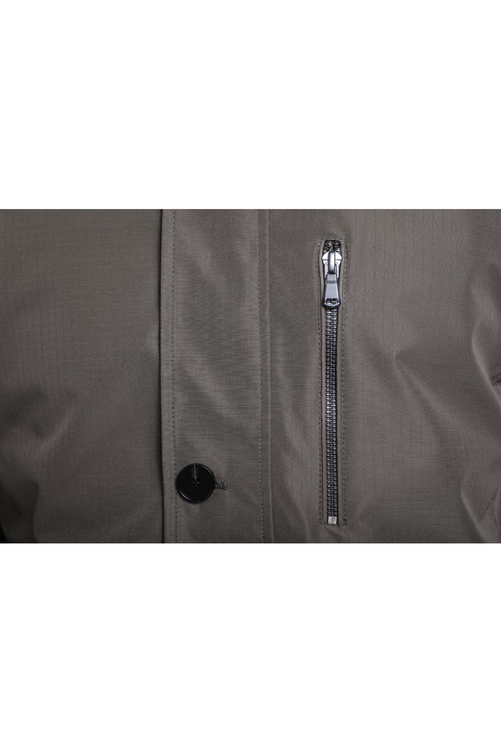 Pánská jarní bunda v zelené barvě. Bunda má zapínání na zip a knoflíky, má dvě boční kapsy, jednu kapsu náprsní a stojáčkový límec.