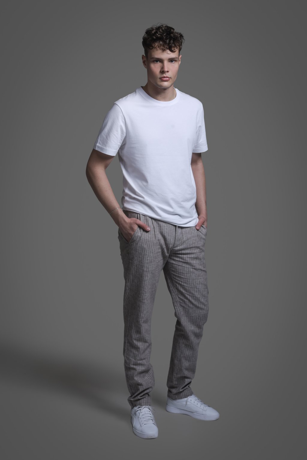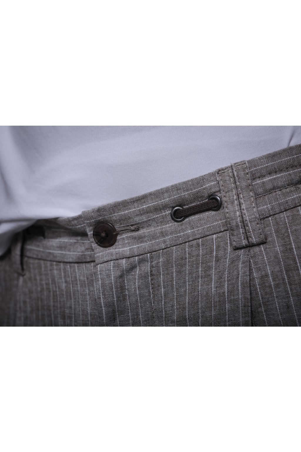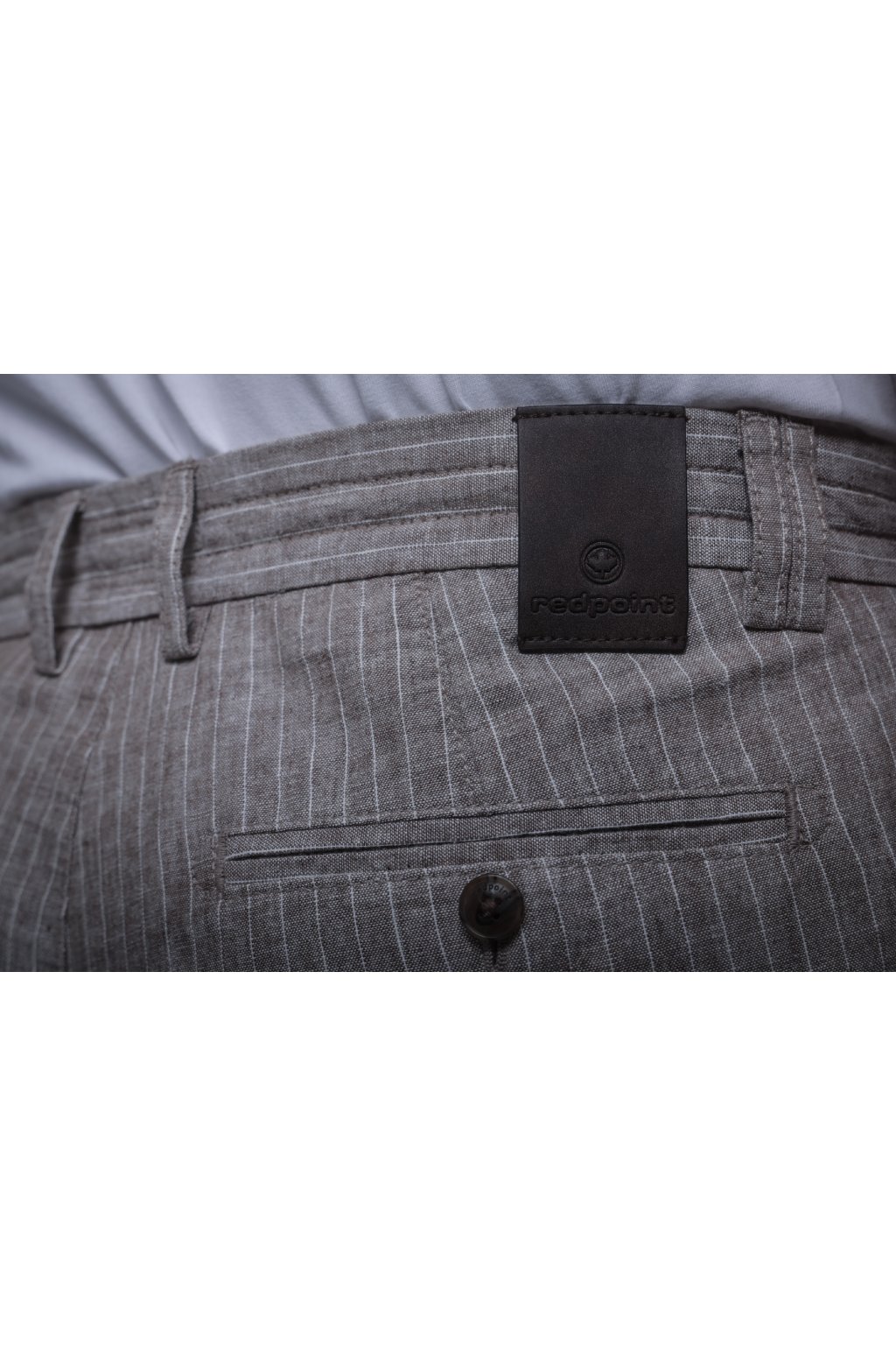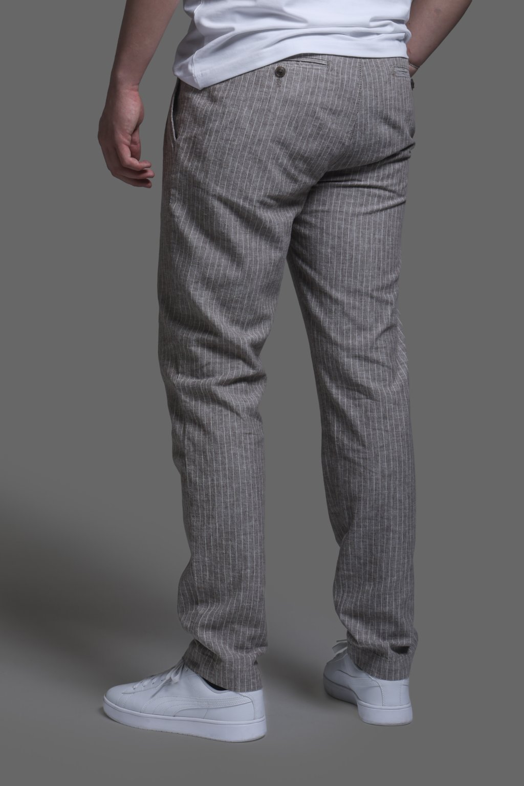 Volnočasové lněné chinos kalhoty v béžové barvě s proužkem a s klínovými kapsami na předním díle a výpustkovými kapsami na zadním díle. Díky podílu lnu jsou lehké, prodyšné a velmi pohodlné, ideální pro letní dny. Skvěle se hodí do práce i pro volný čas.