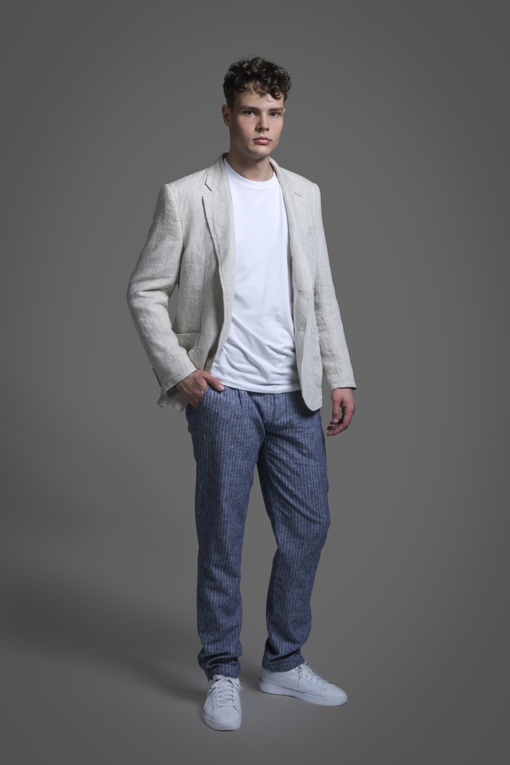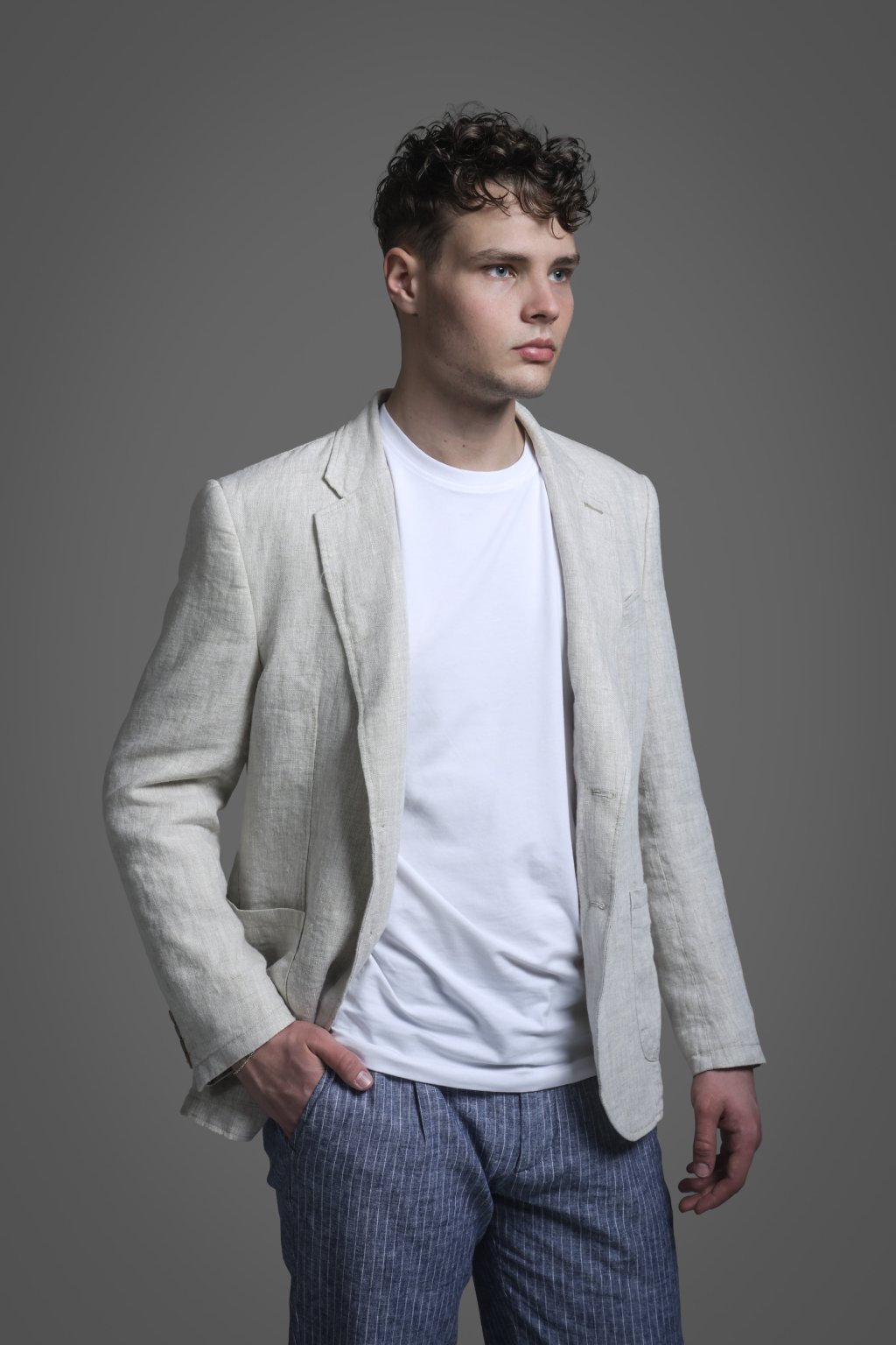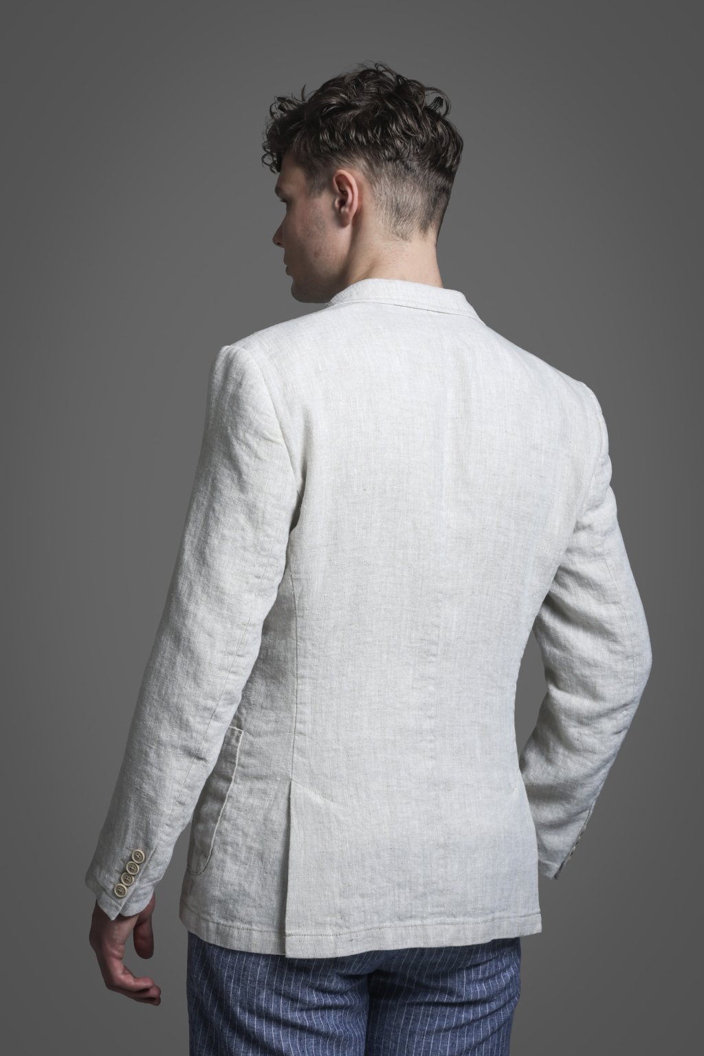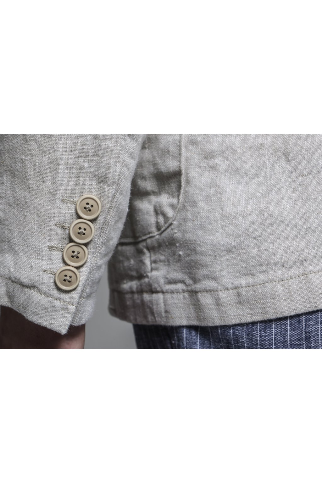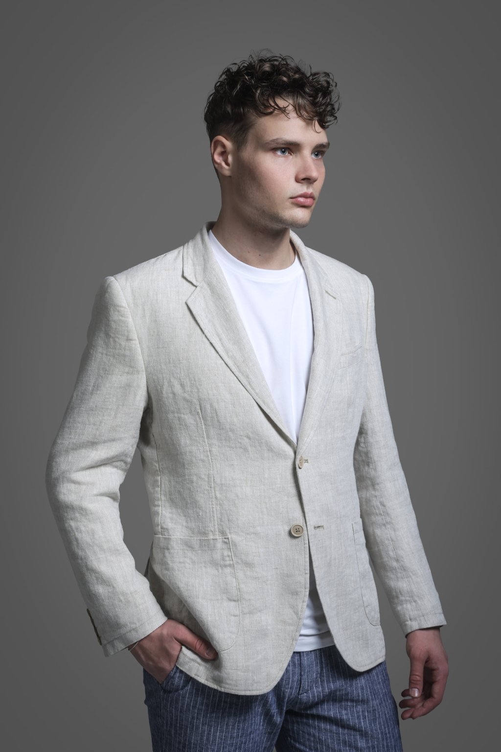 Béžové separátní sako z přírodního lnu je ideální volbou pro horké letní dny. Odlehčené nepodšité provedení zajišťuje maximální prodyšnost a komfort při nošení. Trendové nakládané kapsy dodávají saku ležérně elegantní vzhled vhodný pro vycházkové i neformálnější příležitosti. Sako je zapínané na dva knoflíky a na zadním díle má dva rozparky, které podporují volnost pohybu a pohodlí.