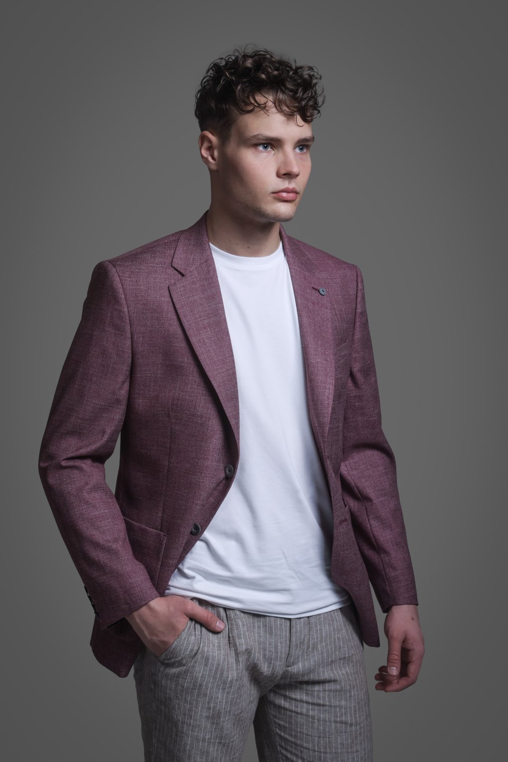 Jarní sako v bordó barvě s nakládanými kapsami. Volnočasové sako má dva knoflíky, dva praktické rozparky, trendové nakládané kapsy a je navrženo ve vyštíhleném střihu, který dokonale zvýrazní vaši postavu.